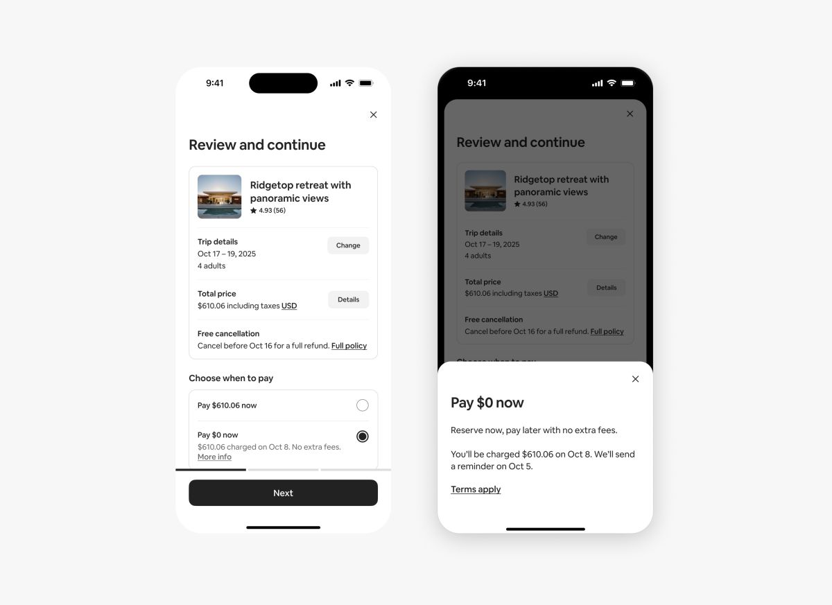 “Reserve Now, Pay Later” joins other flexible payment alternatives offered by Airbnb, including ‘Pay a portion now and the rest later,’ which allows for an initial partial payment with the remainder due closer to the arrival date, and ‘Pay in installments with Klarna.’