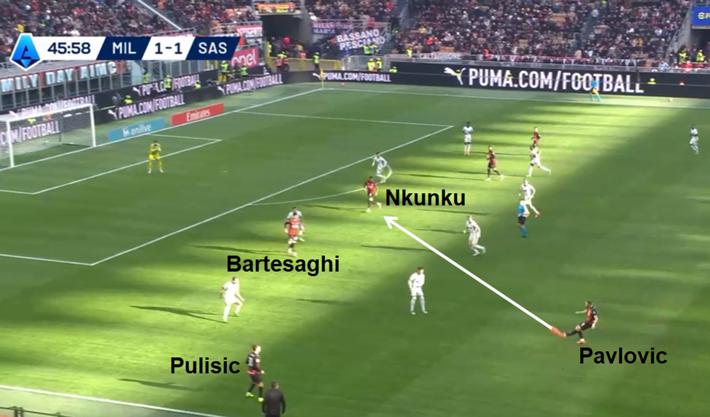 Milan can afford a less explosive left-back because the team’s attacking threats often come from Rabiot, when fit, or Leao. The wing-backs are also supported by the forward runs of the two center backs. This was evident in the goal against Lazio, which originated from a cross by Tomori on the opposite side.