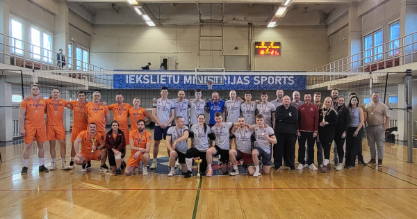 In the final match, the State Police College team defeated the Latgale Region Administration in two straight sets, 2-0, claiming the 2026 State Police volleyball championship title.
