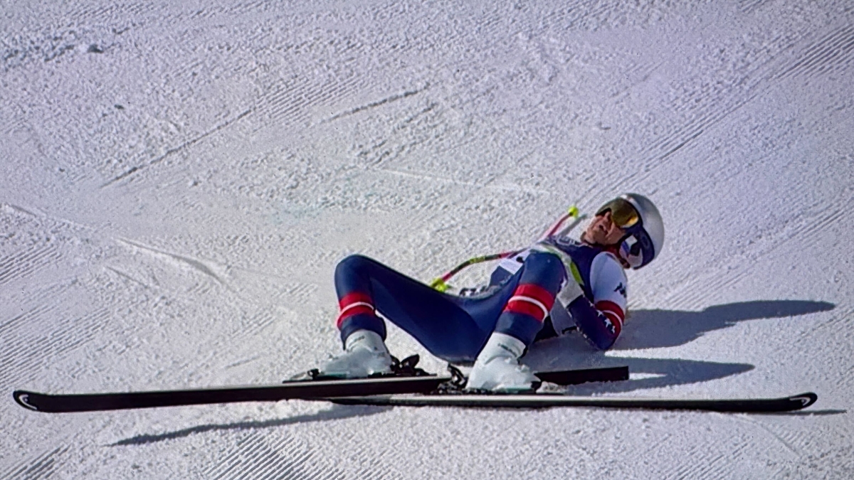 The American champion chose to race with a torn ligament—a decision some called “reckless.” Her run on the Olympia course in the Tofane lasted just 12 seconds, ending in a spectacular crash after she caught a gate with her shoulder.