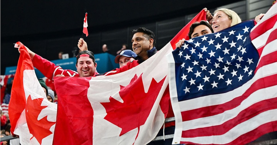 Milano Cortina 2026 Olympics – Ice Hockey – Men’s Gold Medal Game – Canada vs United States – Milano Santagiulia Ice Hockey Arena, Milan, Italy – February 22, 2026. United States fans during the game REUTERS/Marton Monus