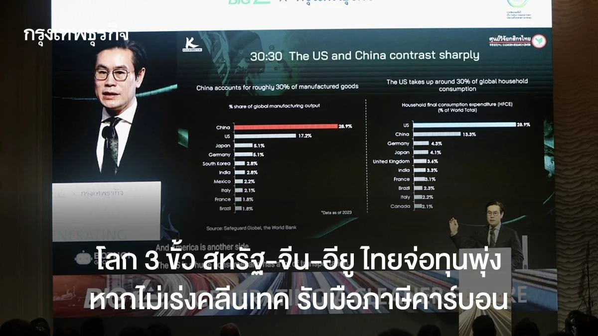 The global landscape is increasingly defined by geopolitical competition, particularly between the United States and China, which Adulwattana described as a “Clash of Ideology.” He outlined a division of the global economy into three primary blocs, each representing approximately 30% of the whole (30-30-30):