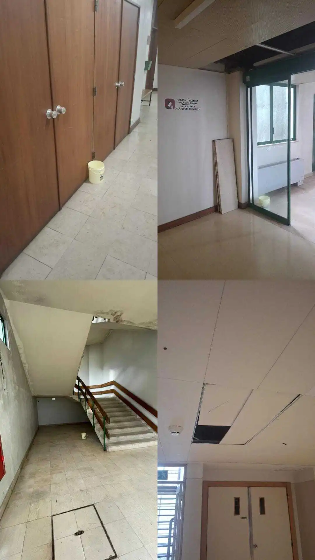 Problems are particularly acute on the Braga campus, specifically in Complex Pedagógico 1, where heavy rainfall causes significant leaks. Students report seeing water running down walls and ceilings, buckets placed throughout hallways and classrooms, persistent dampness, damaged or missing ceiling tiles, and lighting fixtures at risk of falling. “These situations are not isolated incidents or recent occurrences. They repeat year after year without a visible structural solution and directly compromise the carrying out of classes, evaluations, research and academic activities,” the MDA stated.