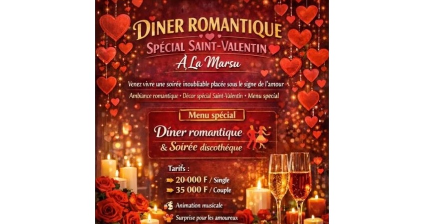 In Casamance, La Marsu is offering a convivial celebration with a special menu, musical entertainment, and a nightclub atmosphere. This package provides a warm and festive way to celebrate Valentine’s Day, combining gastronomy, music, and tropical ambiance.